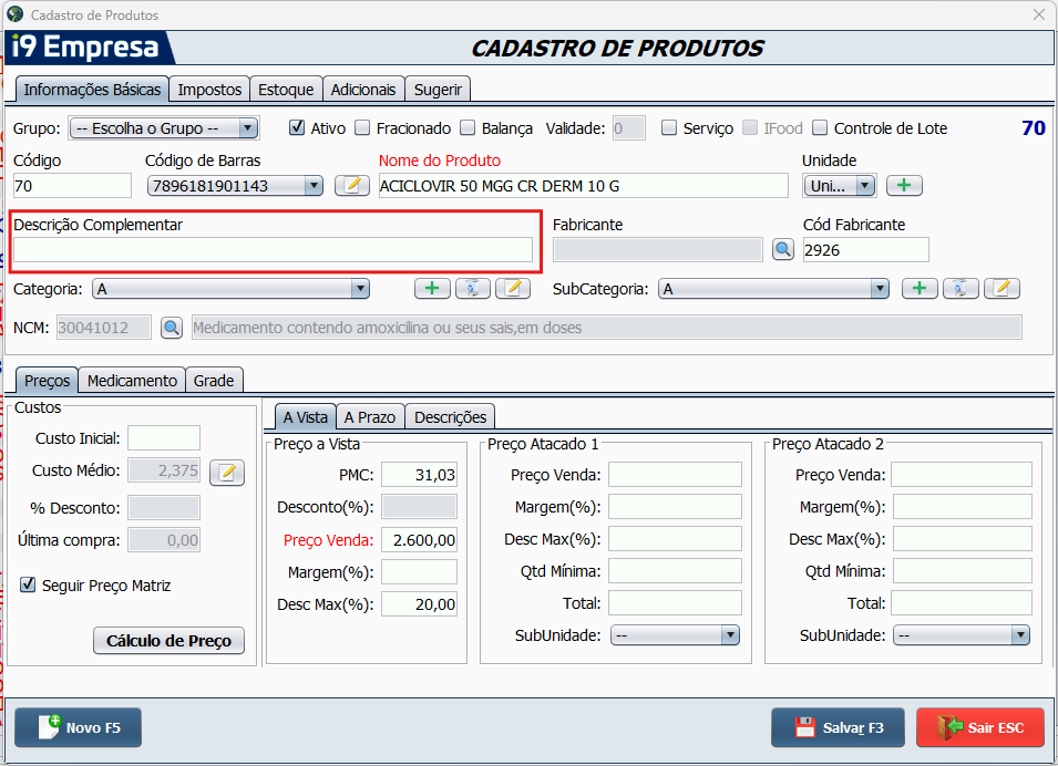Agora vamos aos campos que identificam o item dentro da sua operação.