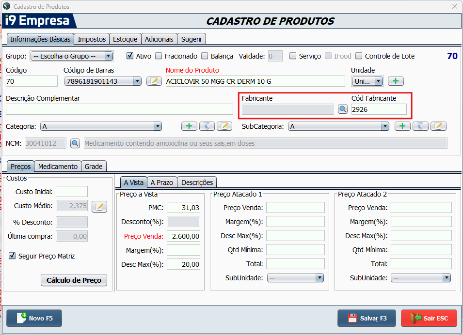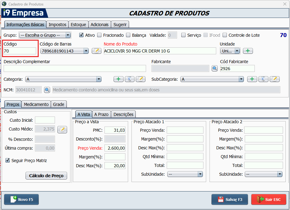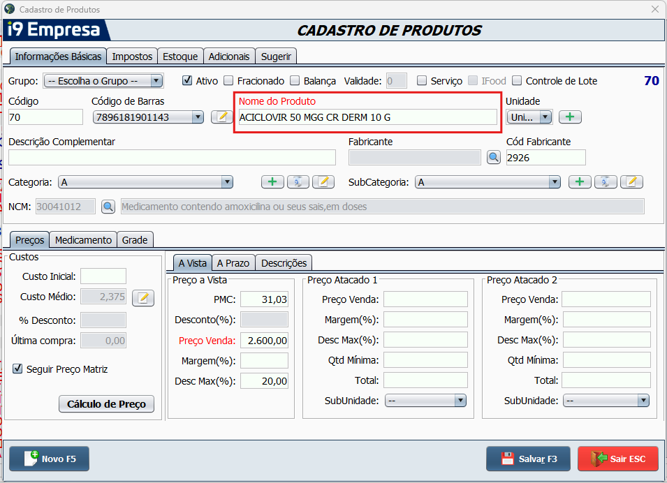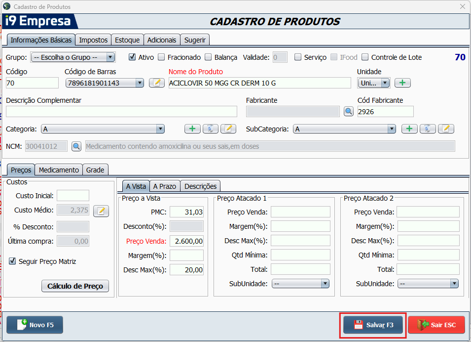 Observação: caso a empresa trabalhe com margem, comissão, tabela ou promoções, esses parâmetros serão detalhados no Episódio 4.