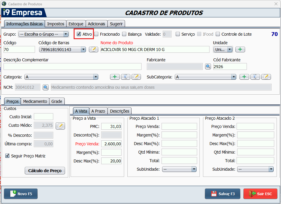 Se o produto está ativo, ele pode ser vendido, movimentado no estoque e aparecer nas integrações.