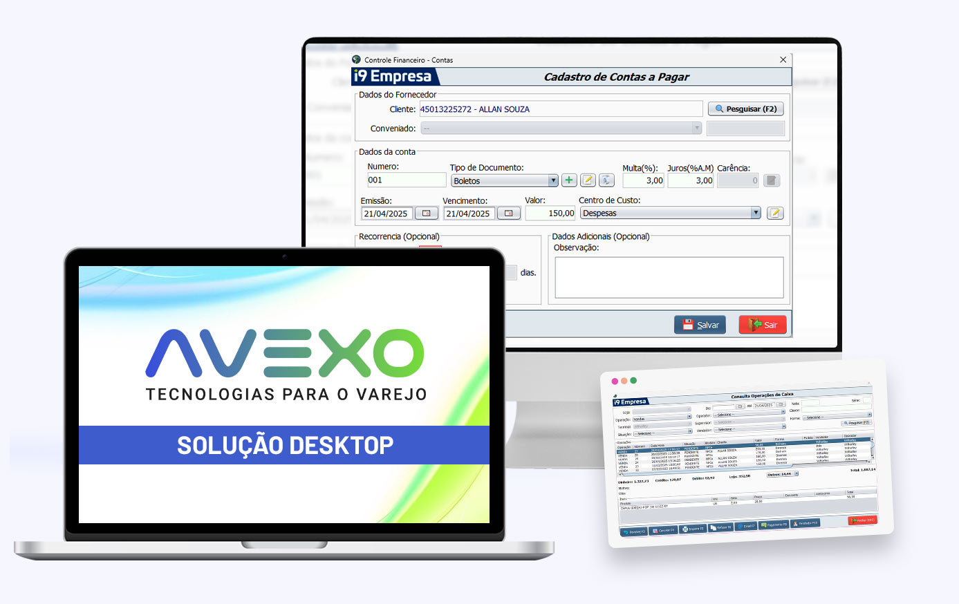 Esses são desafios comuns no varejo. O Sistema Desktop da Avexo resolve isso integrando todos os setores da sua operação em um só lugar — de forma prática, rápida e confiável, mesmo com internet instável.