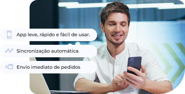 Leve seu negócio até o cliente com um aplicativo completo para vendedores externos, totalmente integrado ao sistema da loja.